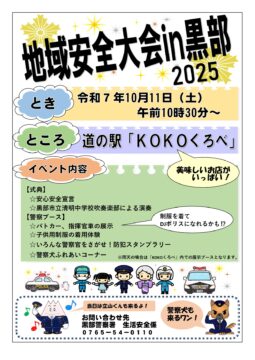 道の駅KOKOくろべにて地域安全大会を実施いたします。