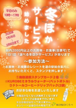 寒い日が続きますが、KOKOくろべにて「冬ぽかサービス」がはじまります!