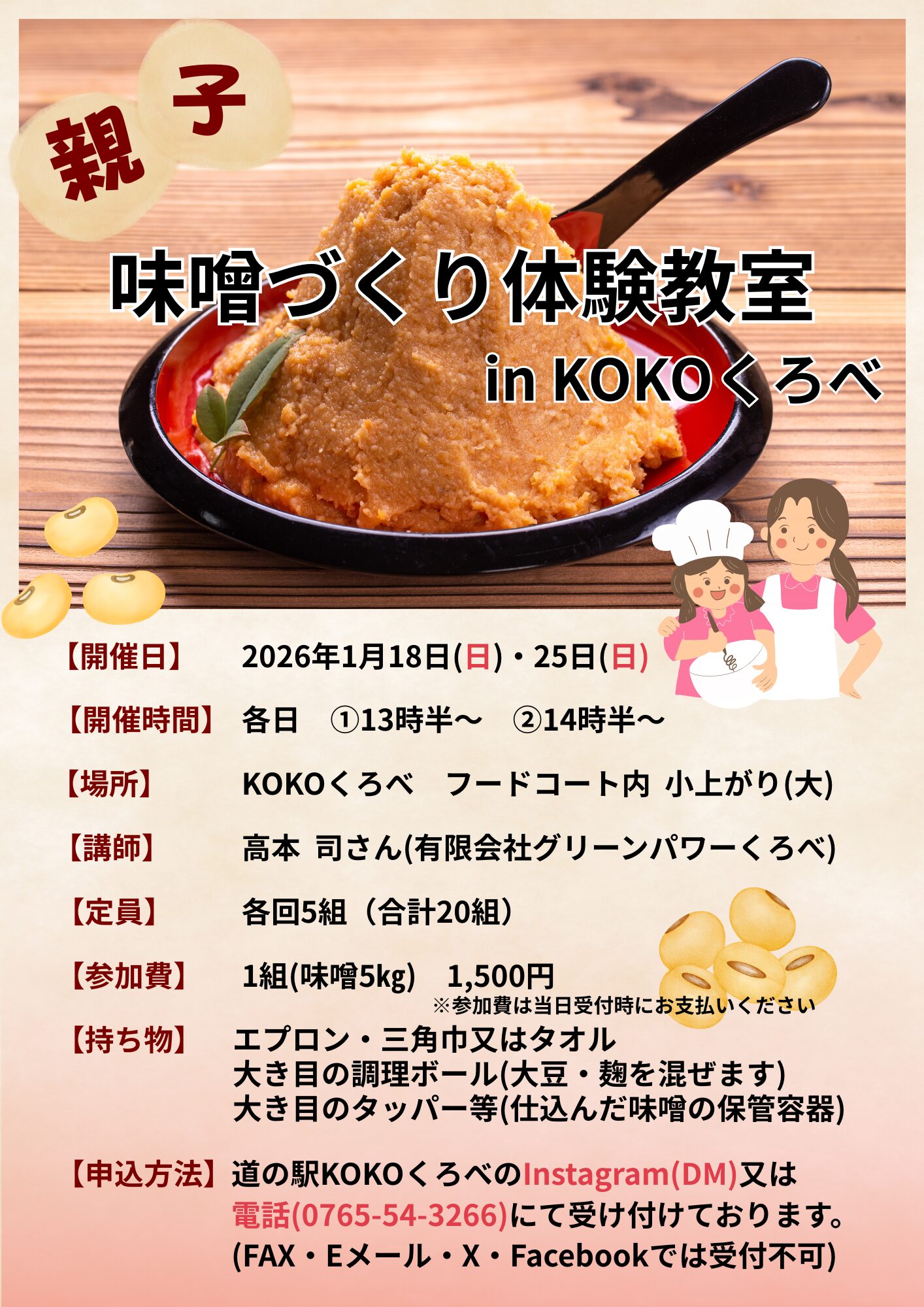 【1/18、1/25】親子味噌づくり体験教室のお知らせ