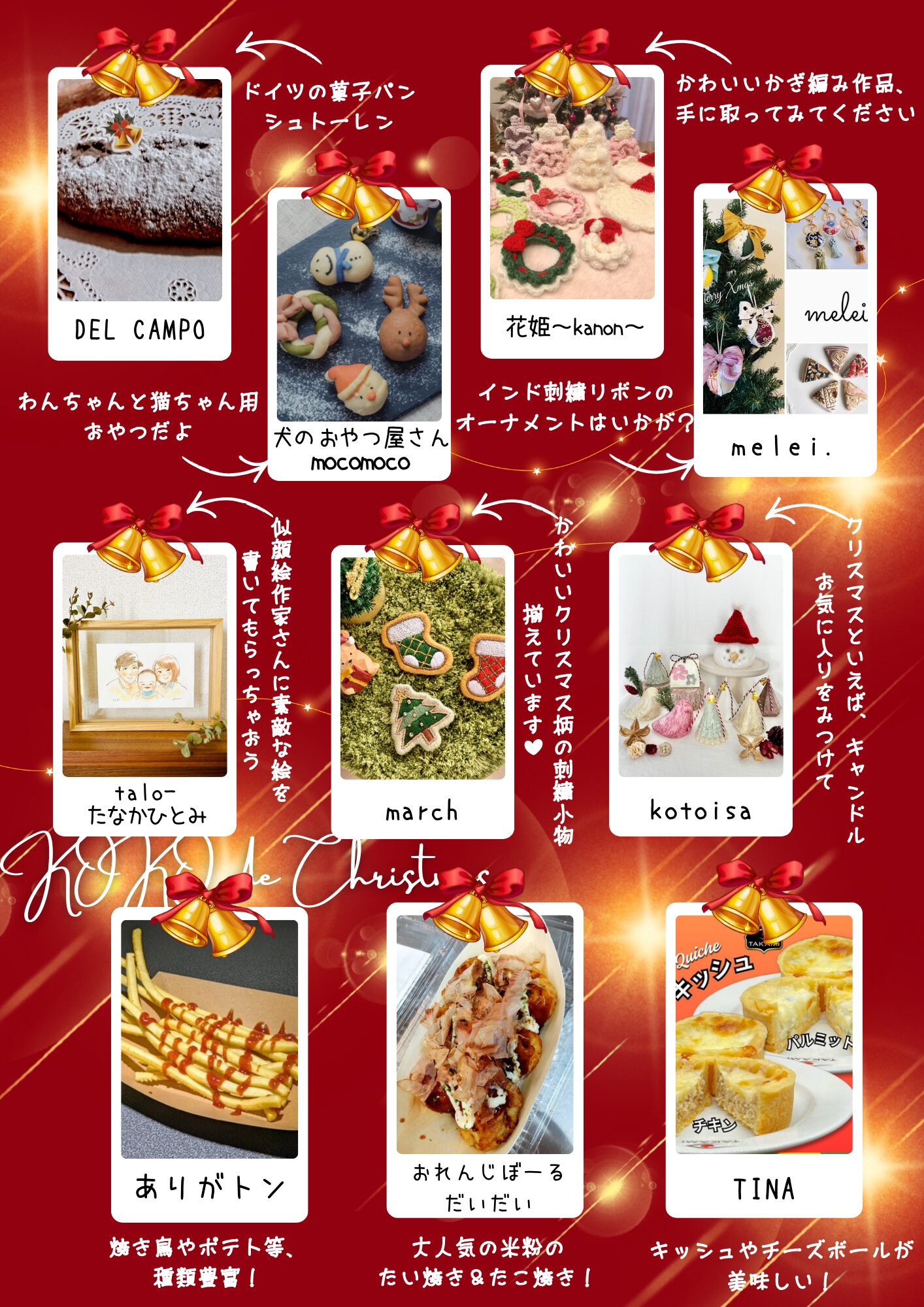 素敵な出店者様が多数参加!クリスマス雑貨などがたくさんです✨キッチンカーもあるので、楽しんでください!