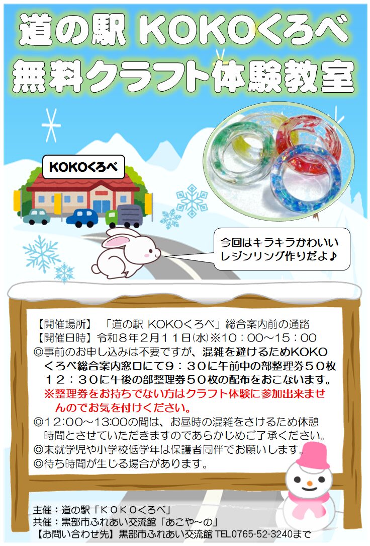 黒部市ふれあい交流館「あこやーの」によるクラフト体験教室を開催します。