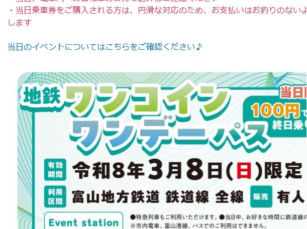 発売箇所:富山地鉄乗車券センター、鉄道線有人各駅