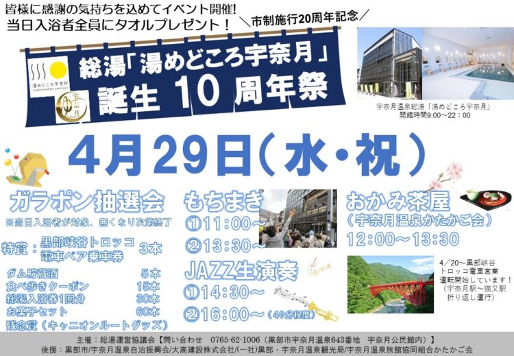 【4/29】総湯「湯めどころ宇奈月」誕生10周年祭