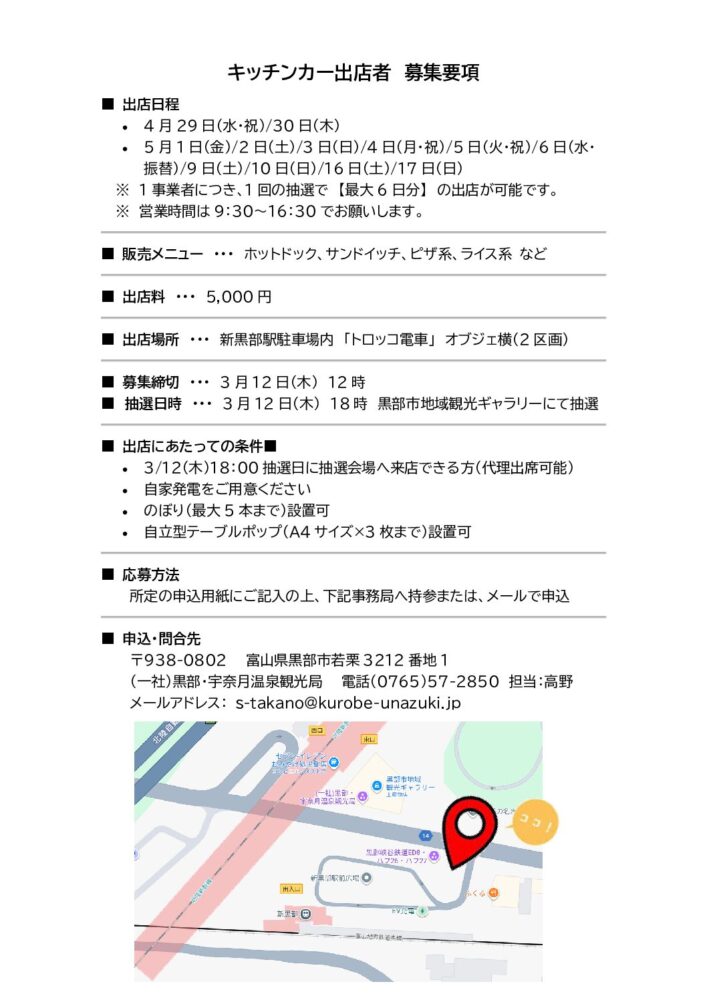 ■ 出店場所 ・・・ 新黒部駅駐車場内 「トロッコ電車」 オブジェ横(2区画)